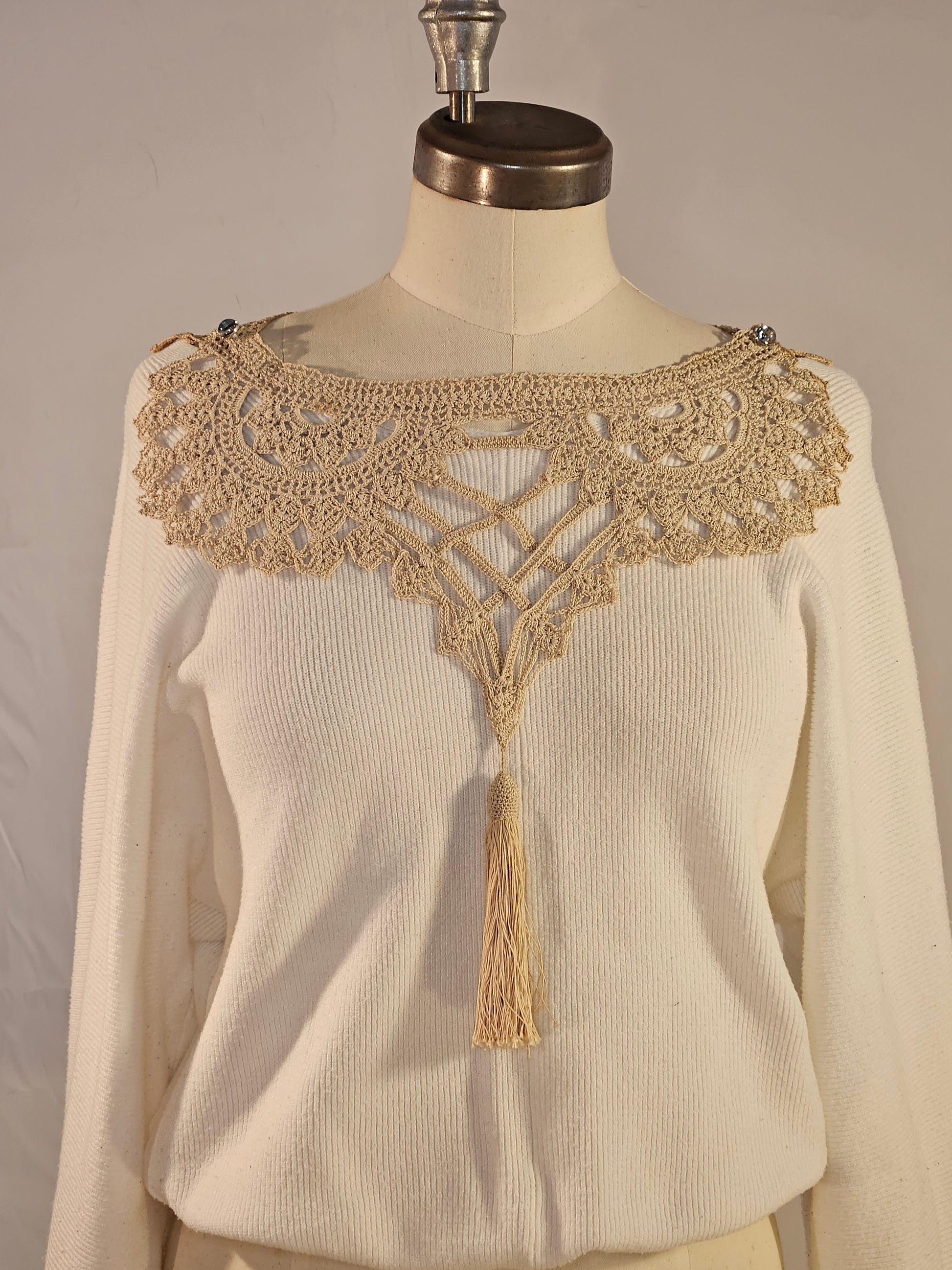 Vintage Romance Ecru Collar with Tassels