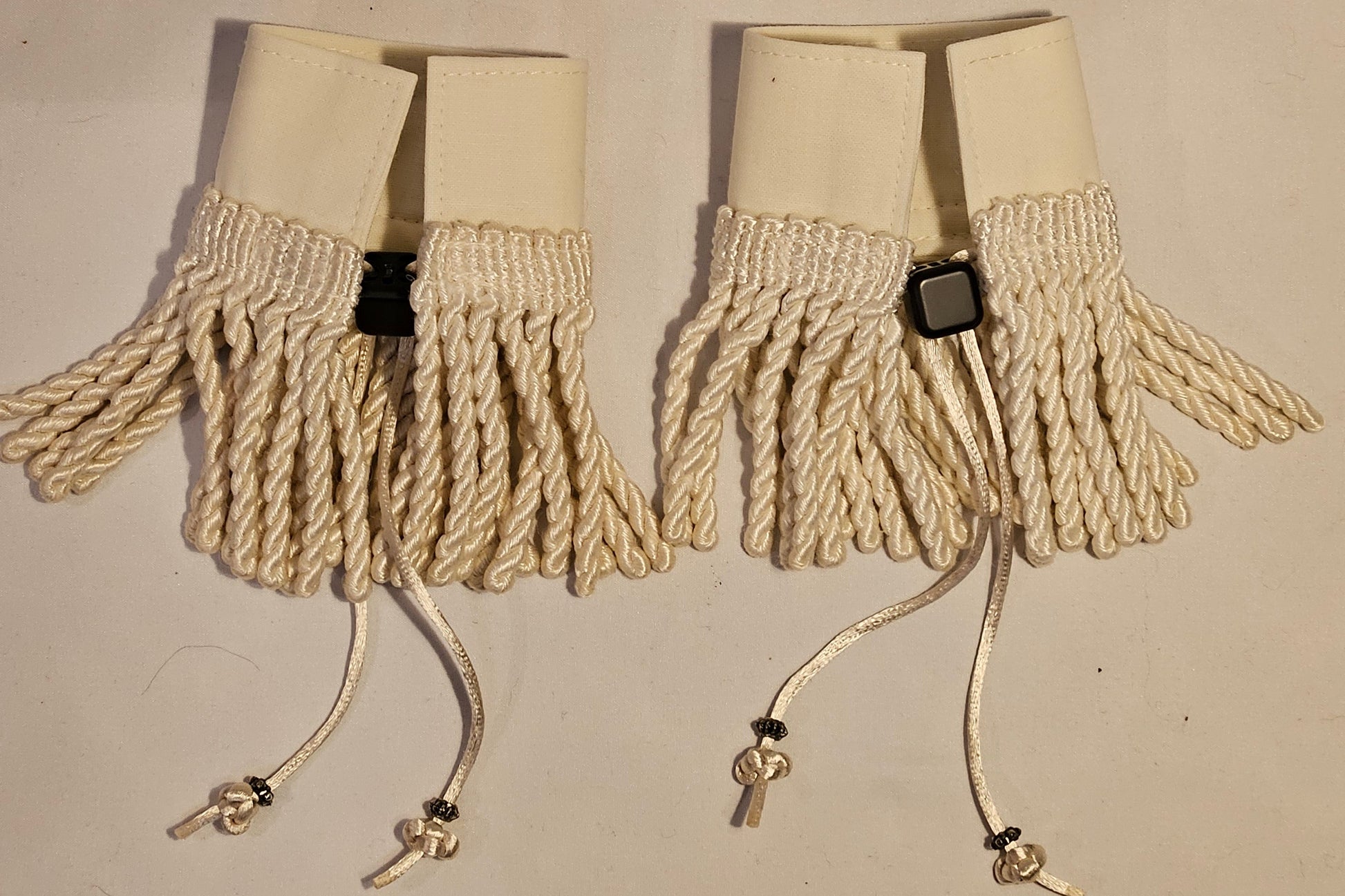 A dreamy lace cuff from the Vintage Romance Collection, handcrafted from reclaimed fringe and chiffon. Featuring an adjustable satin drawstring with silver or black cord locks, this upcycled fashion accessory adds a touch of vintage elegance. One size fits all.